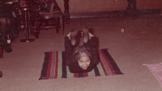 The Library of Congress image, taken in Detroit in March 1973, shows the late civil rights leader Rosa Parks engaged in the holistic practice of yogāsana, lying on her stomach and pulling her feet toward her head while looking up toward the camera.